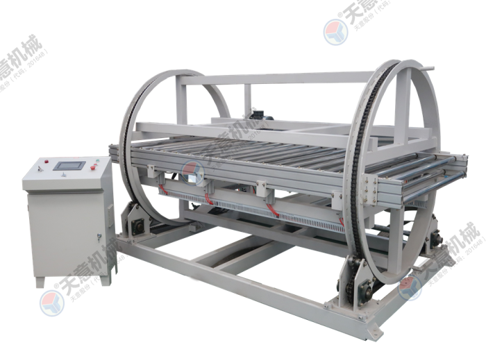 適用于平面門板、櫥柜側板、硅酸蓋板、玻鎂板、水泥纖維板等板式工件,配套連線作業(yè)時進行180°自動翻面1.翻轉電機1.5KW(帶抱閘),輸送電機0.75KW。2.翻轉傳動鏈條采用16A鏈條,承載能力高,動載荷大。3.采用獨立電箱控制,操作控制簡單方便4.設備兩側具有鋼絲網保護,提高設備安全性能